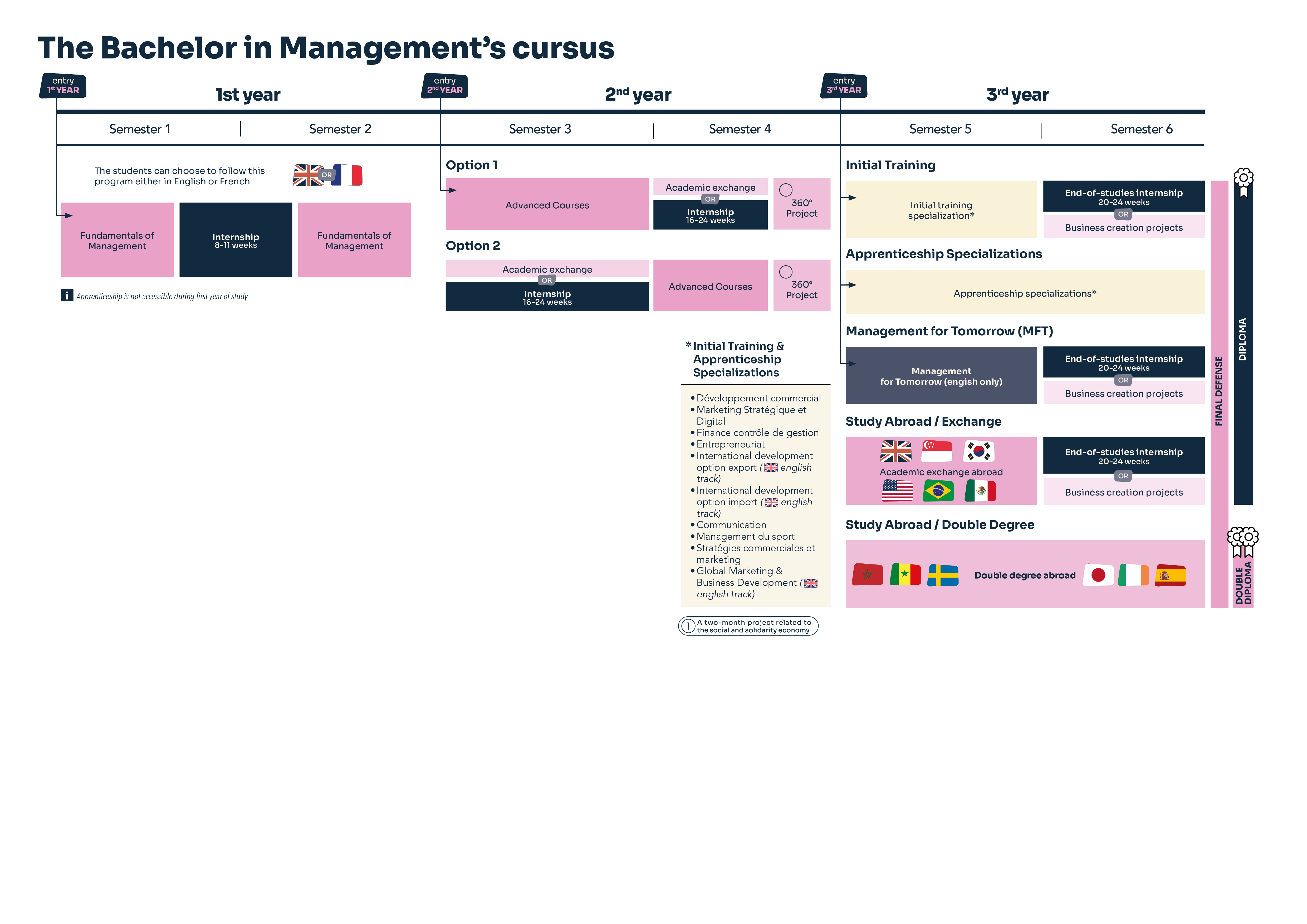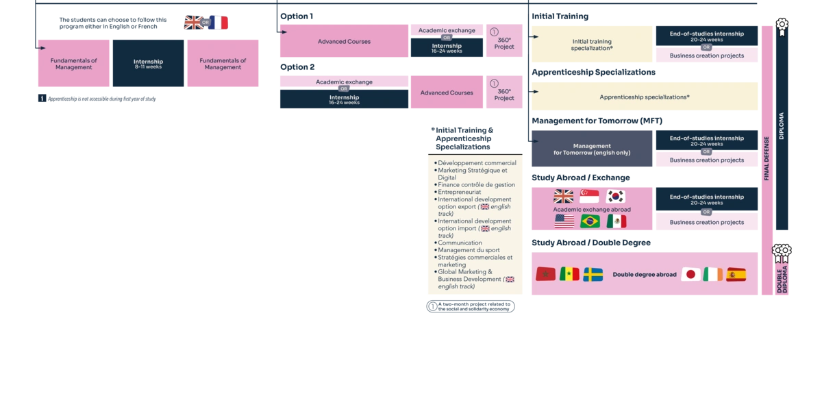 A 3-year program that combines academic excellence, professional experience, study-abroad opportunities, and customization. This program is offered either on our Nantes Campus or Paris Campus or Vendée Campus.