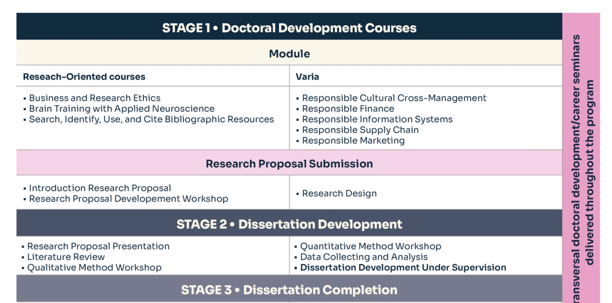 Participants develop advanced management research skills through the courses offered during the first part of the program, which enables them to pursue dissertation research under the supervision of Audencia's faculty.